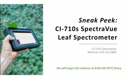 Learn More | Request a Quote | Schedule a Consultation Leaf spectral data is being used to understand vital plant stress attributes in crop optimization, forest productivity, and environmental research. Join Director of Applied Science Galen George for an in-depth, live training on the use and application of the CI-710s SpectraVue Leaf Spectrometer. We have designed this training to… Continue reading…