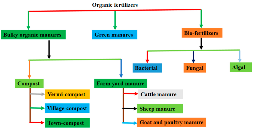Organic fertilizers are derived from animal or plant sources, and there are many types, as shown in Figure 1.