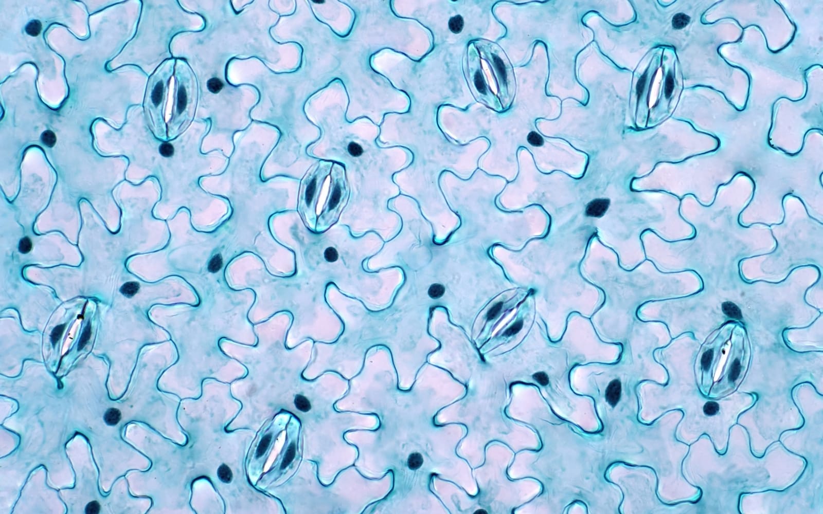 Stomata make up only 3% of a leaf’s area but are responsible for 98% of carbon dioxide (CO2) uptake and water loss. Stomata thus control both photosynthetic and transpiration rates and can be key to transpiration efficiency. Stomatal conductance (gs) also boosts yield by evaporative cooling.